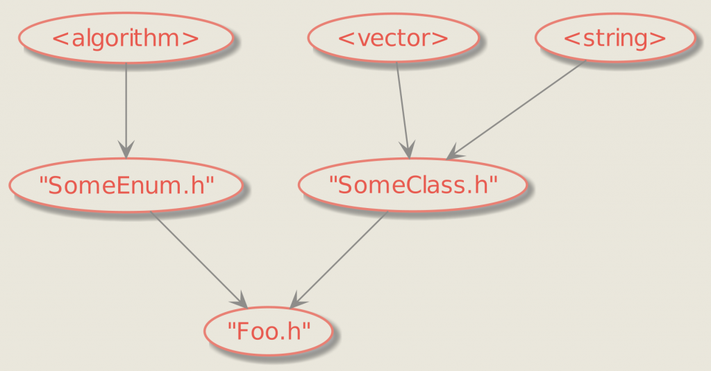 After a small refactoring, all other headers or translation units that include Foo.h but don’t use SomeEnum or SomeClass no longer pay the cost of including their corresponding headers. The refactored Foo.h looks like this: