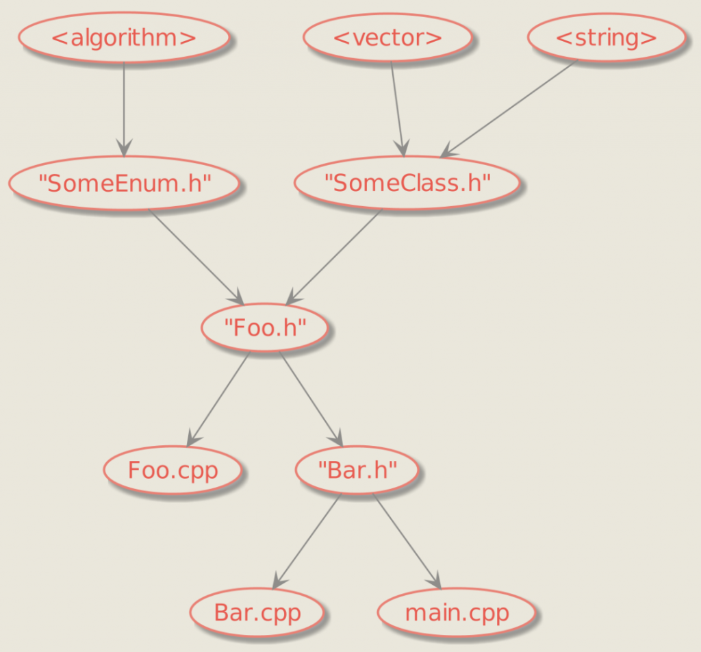 Consider the following include tree: